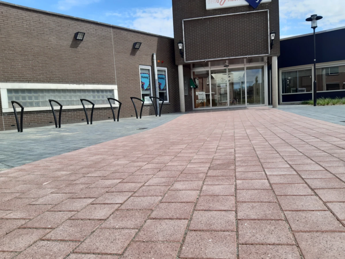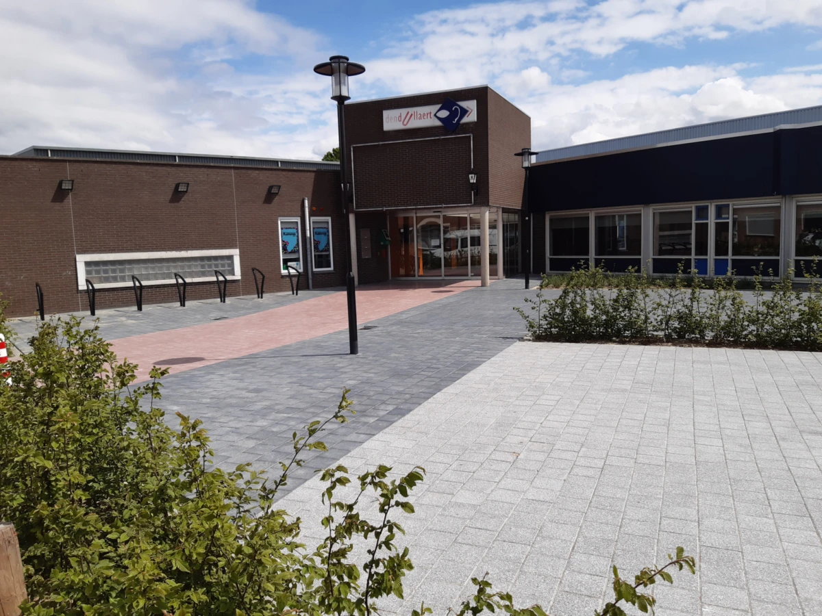 Bij Cultureel centrum Den Dullaert in Hulst is de rode loper uitgerold! Er is gebruik gemaakt van A’gora® 20x20x8cm, geslepen in de kleuren Arduin, Redstone en Kingstone.